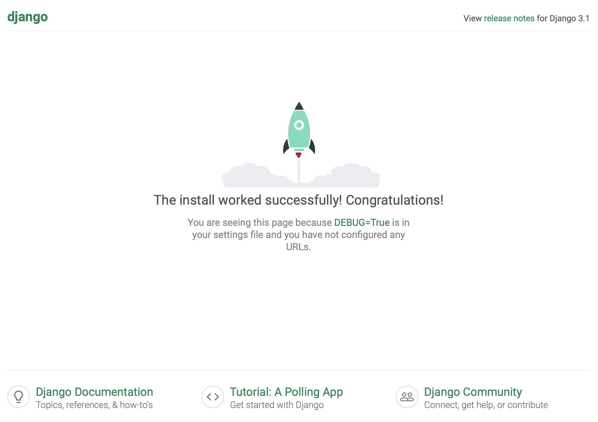After the command, go to http://127.0.0.1:8000/ in your browser. If you can see the same feedback and Django's opening message like below, it means everything is fine.